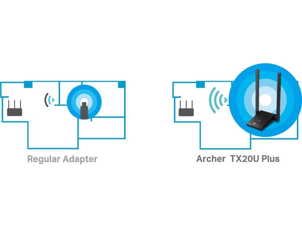 Archer TX20U Plus zapewnia Twojemu komputerowidostęp do technologii 802.11axw tym starsze 802.11a/b/g/n/acOdbiór sygnału Wi-Fiw dwóch oddzielnych pasmach, do574 Mb/s w paśmie 2,4 GHz a1201 Mb/s w paśmie 5 GHzOznacza to lepsze środowisko sieciowe dla wszystkich Twoich potrzeb online. Wybierz pasmo 2,4 GHz do surfowania, obsługi poczty e-mail i mediów społecznościowych lub przełącz się na pasmo 5 GHz do gier, streamingu i pobierania dużych plików.
