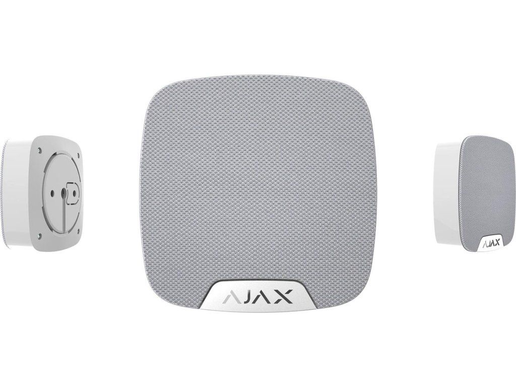 Ajax HomeSiren to bezprzewodowa syrena przeznaczona do użytku wewnętrznego. Moc sygnału akustycznego można płynnie regulować w zakresie od 81 do 105 dB. Do urządzenia można podłączyć zewnętrzną diodę LED sygnalizującą alarm.