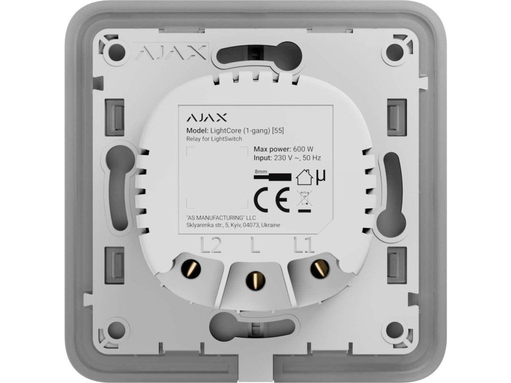 Ajax LightCore (1-gang), przekaźnik jednoprzyciskowy do LightSwitch
