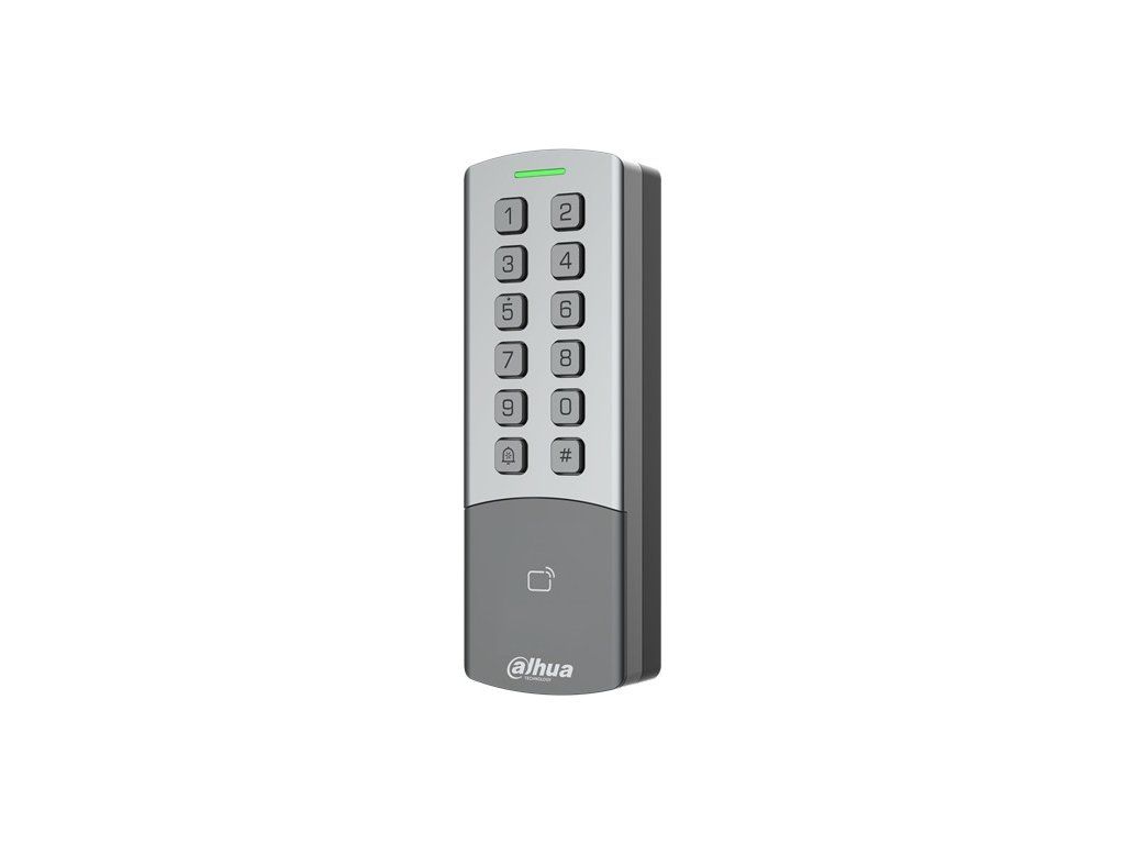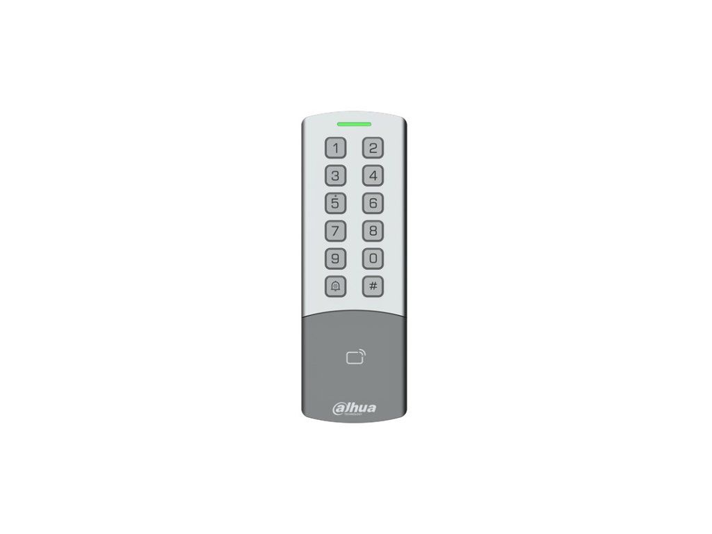 Autonomiczny czytnik RFID z podwójnym dostępem i klawiaturą kodową, odczyt kart zbliżeniowych MIFARE/DESfire EV3 13,56 MHz i EMARINE 125 kHz, obsługa 10 000 użytkowników, 10 000 kart, 100 000 rekordów, możliwość podłączenia dodatkowego czytnika RFID Dahua z przeciwnej strony drzwi (funkcja Anti-pass back), sterowanie zamkiem 1× NO/NC, możliwość podłączenia przycisku wyjścia i czujnika drzwi, antysabotaż,możliwość połączenia przez TCP/IP i zarządzania za pomocą oprogramowania dostępowego SmartPSS Lite lub interfejsu webowego, obsługa komunikacji P2P, sygnalizacja dźwiękowa i LED,Standard zasilania PoElub 12 V DC / 1,5 A (zasilacz nie jest dołączony),Ochrona IP65 / IK08, tworzywo sztuczne / stop cynku, montaż powierzchniowy, wymiary 169,0 × 57,5 × 33,3 mm. Interfejs internetowy czytnika dostępu jest dostępny wyłącznie w języku angielskim. 1x wyjście 12V / 500mA do zasilania zamka.
