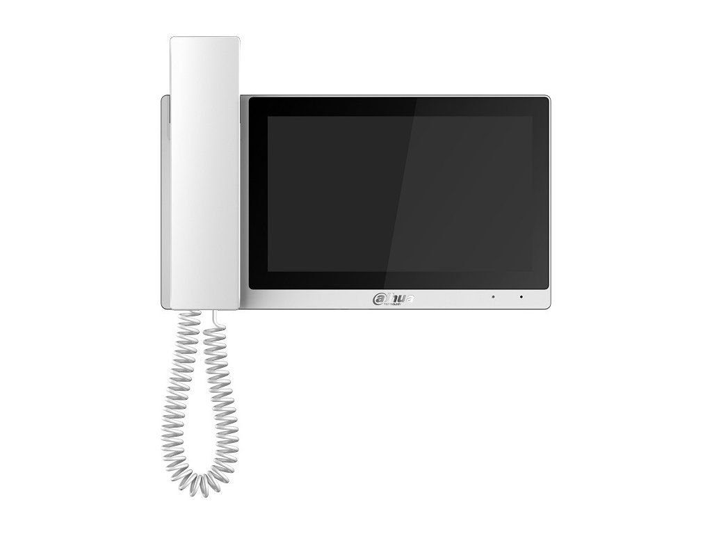 Monitor wideo IP Dahua, biały plastikowy design,7-calowy dotykowy wyświetlacz LCD o rozdzielczości 1024 x 600 px, Kompresja H.264. Komunikacja TCP/IP,Wi-Fi, graficznie przejrzyste menu,możliwość robienia zdjęć w przypadku nieodebrania połączenia po włożeniu karty micro SD(nie dołączone) Maksymalna obsługiwana pojemność karty SD do 32 GB,możliwość podłączenia do 20 centrali drzwiowych i 8 zewnętrznych kamer CCTV IP Dahua, obsługa połączeń wideo/powiadomień push na telefony komórkowe z systemem Android i iOS przez Internet (aplikacja DMSS), 1x złącze RJ-45 do podłączenia sieci, 6x styki NO do podłączenia wejść alarmowych, 1x wyjście alarmowe NO, sterowanie 2 zamkami, możliwość dzwonienia z drzwi, zasilanie zewnętrznym zasilaczem 12V/1000 mA (zasilacz nie jest dołączony) lub przełącznikiem PoE 802.3af,Jeśli korzystasz z zewnętrznego źródła zasilania i funkcji Wi-Fi, użyj źródła zasilania 12 V DC/min. 2 A,montaż natynkowy, wymiary 236,0 x 129,8 x 23,0 mm, zastosowanie wewnątrz pomieszczeń.