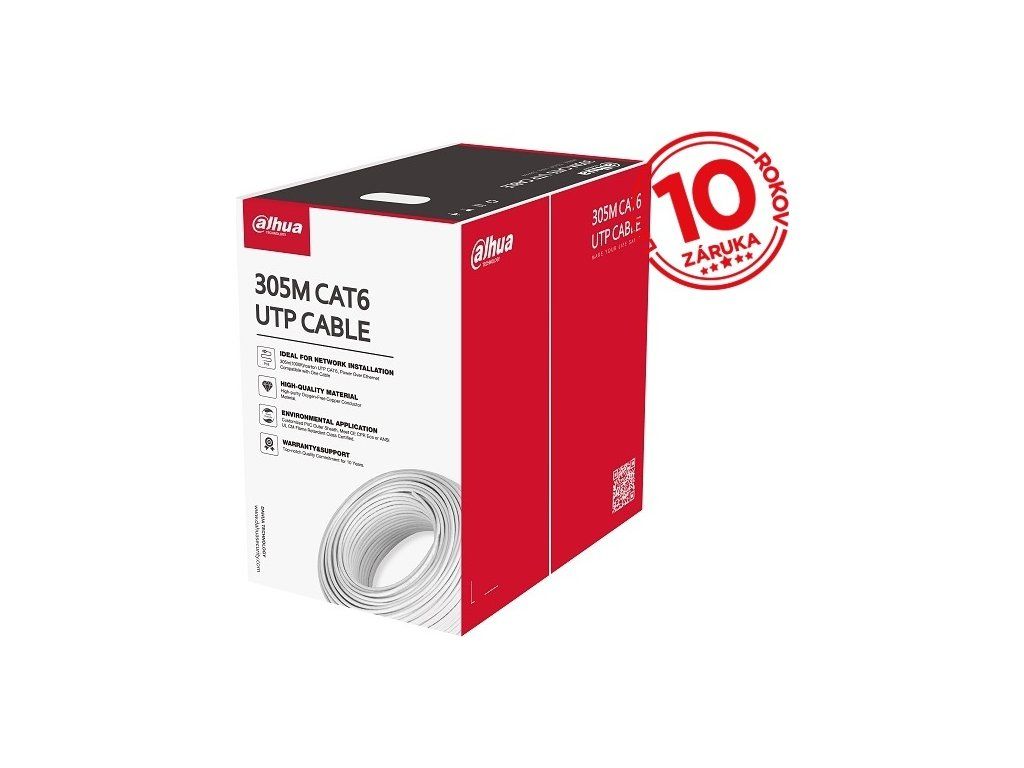 Kabel danych UTP Dahua, CAT6, średnica jednej żyły 0,53 mm, średnica całego kabla 6 mm, PVC, opakowanie 305 m/karton, można zamówić tylko całe opakowanie
