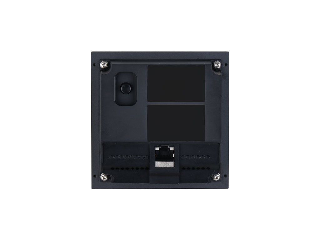 Kamera drzwiowa IP Dahua, czarna, podstawowy moduł wideo z elektroniką, kamera kolorowa 2 Mpx, pole widzenia 168°, WDR, oświetlenie IR, kompresja H.264 i H.265,Komunikacja TCP/IP, ustawienia poprzez interfejs webowy, funkcja pozostawienia linku dla użytkownika, IP 65,1x 12 V / 600 mA styk NO/NC do podłączenia zamka, 1x styk NO przycisku wyjścia,1x RS-485 do podłączenia drugiego modułu sterującego zamkiem drzwi DEE 1010B, zasilanego przez przełącznik PoE 802.3aflub zasilacz 48 V DC / 1000 mA (zasilacz nie jest dołączony),montaż podtynkowy w ramce montażowej, wymiary 100,0 x 100,0 x 49,4 mm, bez puszki instalacyjnej