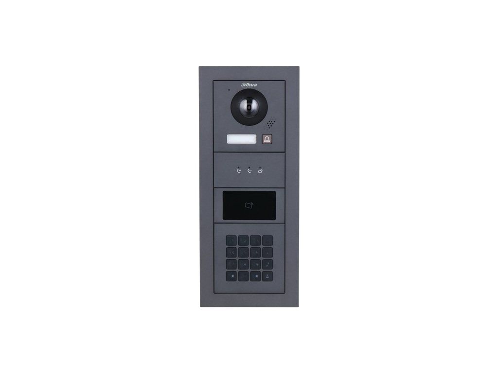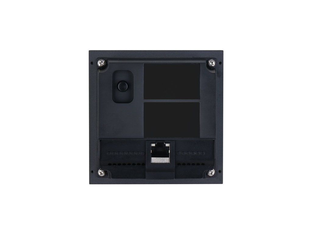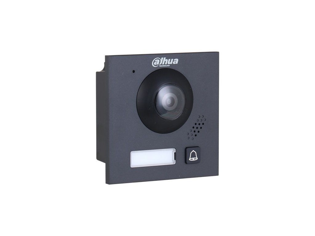 Kamera drzwiowa IP Dahua, czarna, podstawowy moduł wideo z elektroniką, z 1 przyciskiem mechanicznym i tabliczką znamionową, kamera kolorowa 2 Mpx, kąt widzenia 168°, WDR, oświetlenie IR, kompresja H.264 i H.265, komunikacja TCP/IP, ustawienia poprzez interfejs webowy, funkcja pozostawienia linku dla użytkownika, IP 65,1x 12 V / 600 mA styk NO/NC do podłączenia zamka, 1x styk NO przycisku wyjścia,1x RS-485 do podłączenia drugiego modułu sterującego zamkiem drzwi DEE 1010B, zasilanego przez przełącznik PoE 802.3aflub zasilacz 48 V DC / 1000 mA (zasilacz nie jest dołączony),montaż podtynkowy w ramce montażowej, wymiary 100,0 x 100,0 x 49,4 mm, bez puszki instalacyjnej