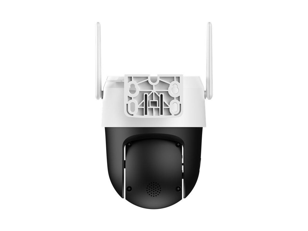 Kamera PT Wi-Fi 5 Mpx, 1/2,7 CMOS,2880 x 1620 px przy 1–25/30 kl./s, obiektyw 4 mm, 0,007 lx przy F1.6 (kolor, 30 IRE), H: 78° V: 42° D: 92°,IR 30 m, WL 30 m; H.265 / H.264 / H.264B / H.264H / MJPEG (podstrumień); DWDR; inteligentne funkcje: wykrywanie osób, wykrywanie pojazdów, automatyczne śledzenie; ONVIF;Mikrofon i głośnik; Wi-Fi: 802.11a/b/g/n/ac/ax 2,4 i 5 GHz;Bluetooth; Micro SD do 256 GB, zasilanie 12 V DC, pobór mocy maks. 14 W; 1× RJ-45 10/100; wymiary: 125,4 × 110,0 × 140,3 mm, waga: 0,4 kg, temperatura pracy od -30 °C do +55 °C,IP66