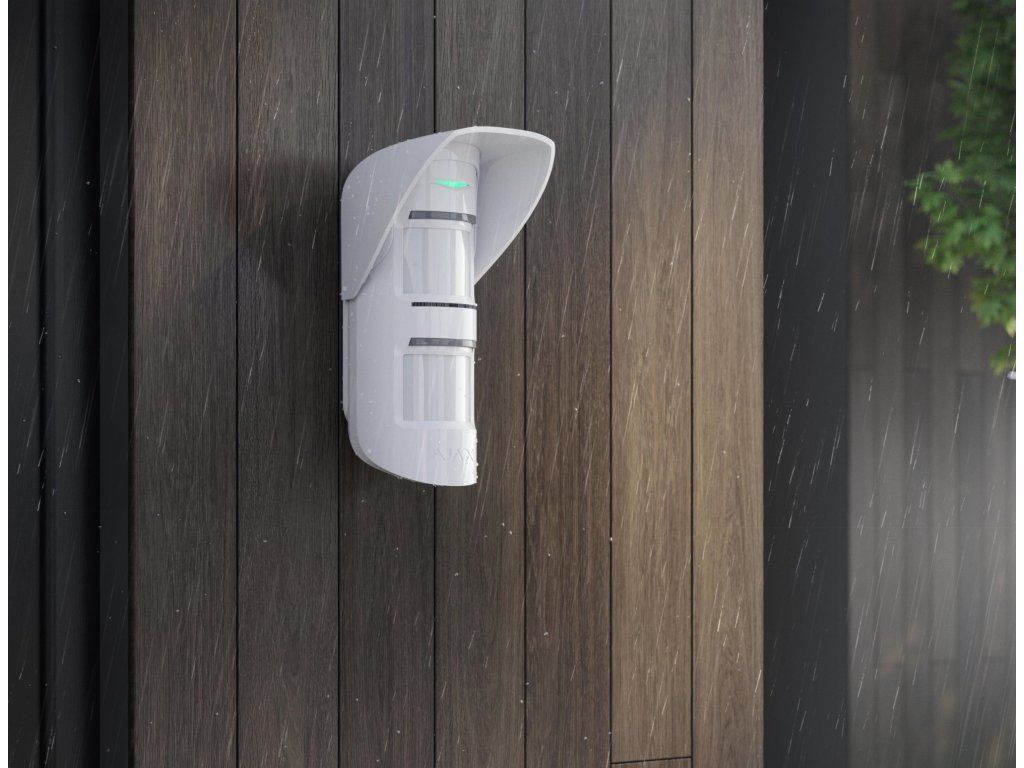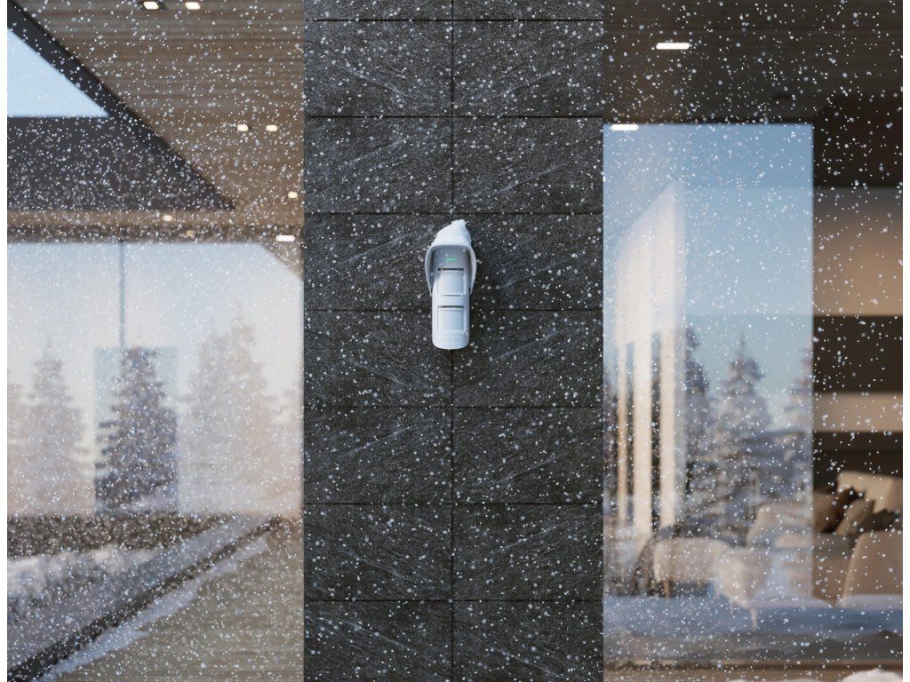 Osłona do czujnika MotionProtect Outdoor chroni czujniki przed deszczem i śniegiem. Długotrwałe narażenie na ulewny deszcz może powodować zakłócenia, których można uniknąć, instalując osłonę Hood MPO.