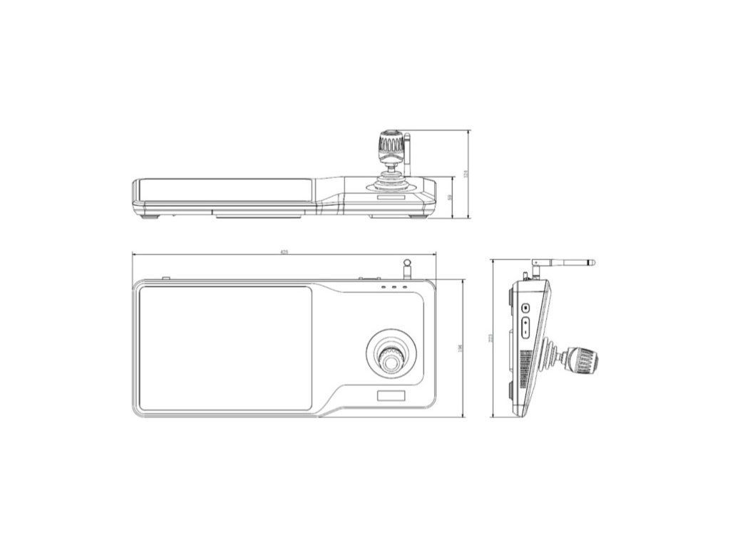 Klawiatura do kamer PTZ, ekran dotykowy 10,1", Dwurdzeniowy procesor Braswell, wbudowany LINUX 4.2.0, 4x HDMI, strumieniowanie w H.265 / H.264 / MPEG, maks. wydajność dekodowania 4CH @ 12 MP (20 kl./s) / 4CH @ 4K (30 kl./s) / 6CH @ 5 MP (30 kl./s) / 8CH @ 4MP (30 kl./s) / 10CH @ 3 MP (30 kl./s) / 16CH @ 2 MP (30 kl./s), 1x wejście/wyjście audio, dźwięk dwukierunkowy, wejście/wyjście alarmu 4/4, 2x RJ-45 (10/100/1000 Mbps), Wi-Fi, 2x USB 3.0, 2x USB 2.0, 1x RS-485, 2x RS-232, 1x RS-422, joystick czteroosiowy, zasilanie 12 V DC, pobór prądu 2,1 A, wymiary 425 x 105 x 26 mm, waga 3,73 kg