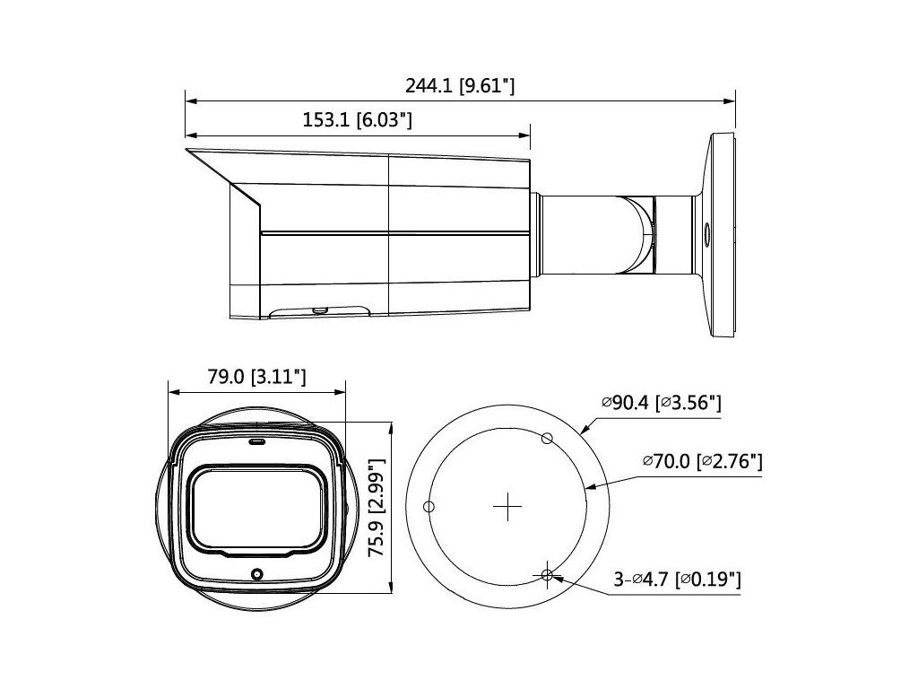 Kompaktowa kamera IP 4 Mpx Pro AI Starlight, Dzień/Noc,Inteligentne oświetlenie IR o zasięgu 50 m, 1/1,8" 4-megapikselowy przetwornik CMOS ze skanowaniem progresywnym,rozdzielczość 2688 x 1520 px, fotografowanie z szybkością 25/30 kl./s, czułość 0,002 lx przy F1.6,obiektyw stały 6,0 mm, pole widzenia H: 56°, V: 31°, obrót poziomy 360°, pochylenie pionowe 0°–90°, AWB, AGC, ROI, BLC, HLC, WDR (120 dB), 3D DNR, wykrywanie twarzy, liczenie osób, kompresja H.265 / H.265+ / H.264 / H.264+ / H.264B / H.264H / MJPEG (strumień pomocniczy), zgodność z ONVIF, wejście/wyjście audio 1/1, wejście/wyjście alarmowe 1/1, RJ-45 (10/100 Base-T), gniazdo dlaKarta MicroSDmaks. 256 GB, temperatura pracy od -30 °C do +60 °C,IP 67, IK 10, zasilanie DC 12 V (±30%), PoE (802.3af), pobór mocy < 8,7 W, obsługa RTMP, wymiary 244,1 × 79,0 × 75,9 mm, waga 0,815 kg