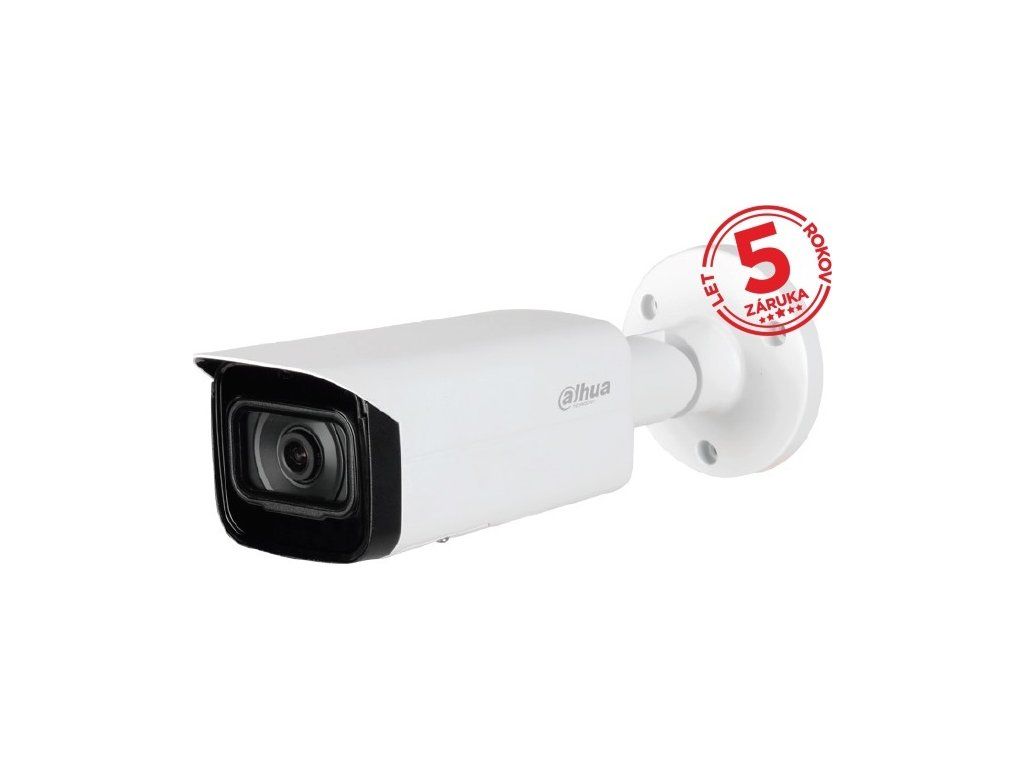 Kompaktowa kamera IP 5 Mpx, zewnętrzny,Dioda IR o zasięgu 80 m, 1/2,7" 5 megapikseli progresywny CMOS,rozdzielczość 2594 x 1944 px @ 20 fps, 2688 x 1520 px @ 25/30 fps, czułość 0,0009 lx @ F 1,6 (kolor, 30 IRE),Obiektyw 3,6 mm, pole widzenia H: 92°, V: 45° D: 100°, AWB, BLC, HLC, WDR, 3DNR, kompresja H.265 / H.264 / H.264H / H.264B / MJPEG (Sub Stream), obsługa inteligentnych kodeków,IVS, ochrona obwodowa, pułapka, SMD 3.0, wykrywanie twarzy, liczenie osób, inteligentne wyszukiwanie, mapa cieplna, zgodny z ONVIF,Gniazdo na kartę MicroSD do 512 GB, RJ-45, zasilanie 12 VDC/PoE(802.3af), ePoE, temperatura pracy od -40 °C do +60 °C,IP 67, IK 10, wymiary 244,1 x 79 x 75,9 mm, waga 0,82 kg