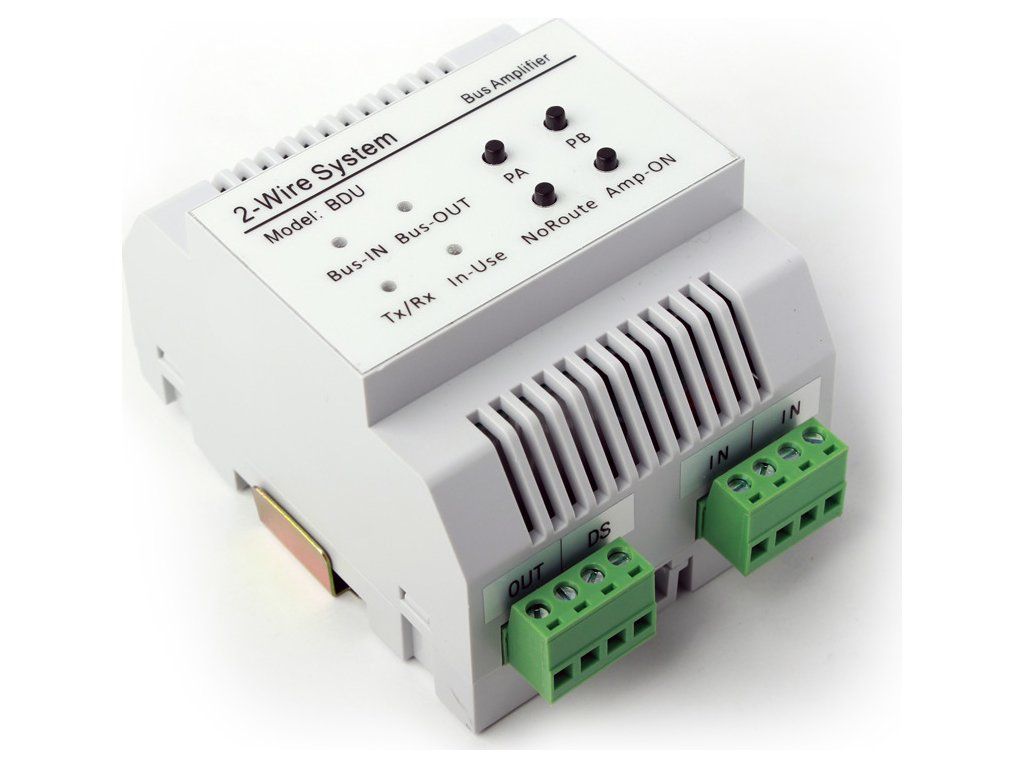 Moduł wzmacniający sygnał wideo, służy do rozszerzenia zasięgu magistrali 2-przewodowej,wymagany dodatkowy zespół zasilania (PS5-24 + SP18), wymiary: 72x90x60 mm, wersja na szynę DIN