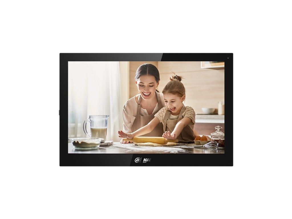 Monitor wideo IP Dahua z obsługą bez użycia rąk, Android 8.1, czarna plastikowa konstrukcja,10-calowy kolorowy ekran dotykowy LCDo rozdzielczości 1024 x 600 px, kompresja H.264, komunikacja TCP/IP, menu graficzne,opcja automatycznego tworzenia obrazów w przypadku nieodebrania połączenia lub filmów po pozostawieniu linku po włożeniu karty micro SD (brak w zestawie), domofon w kilku monitorach w mieszkaniu (max. 6 monitorów),łączność do 20 jednostek drzwiowych i zewnętrznych kamer CCTV Dahua IP, obsługa transmisji wideorozmów / powiadomień push na smartfony z systemem Android i iOSprzez Internet (aplikacja DMSS), 1x złącze RJ-45 do połączenia sieciowego,Wi-Fi 2,4 GHz b/g/n, 6x styk NO do podłączenia wejść alarmowych- Funkcja panelu sterowania EZS, 1x wyjście alarmowe NO, sterowanie 2 zamkami,dzwonienie dzwonka do drzwi, zasilany zewnętrznym zasilaczem 12 V DC / 2000 mA (zasilacz nie jest dołączony) lub przełącznikiem PoE 802.3af, montaż natynkowy, wymiary 260 x 170 x 15 mm, do użytku wewnątrz pomieszczeń