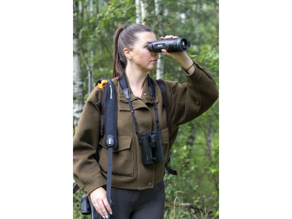 Aquila została zaprojektowana z myślą o wygodnej obsłudze jedną ręką. Dzięki praktycznemu pierścieniowi regulacji ostrości można szybko i precyzyjnie ustawić obraz bez zbędnego ruchu dłonią. Ta ergonomiczna konstrukcja jest idealna zarówno dla użytkowników prawo-, jak i leworęcznych, dzięki czemu urządzenie jest niezwykle przyjazne dla użytkownika nawet w trudnych warunkach, takich jak polowania czy działania taktyczne.