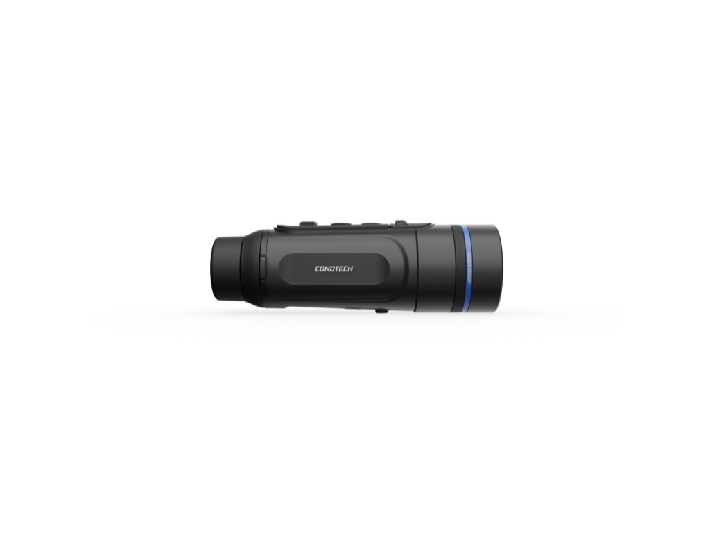 Conotech Aquila 650 to profesjonalny monokular termowizyjny, który łączy wysoką czułość, nowoczesny design i praktyczne funkcje. Dzięki rozdzielczości detektora 640 × 512 px, rozmiarowi piksela 12 μm i czułości <15 mK, oferuje ostry obraz o doskonałej rozdzielczości szczegółów nawet w warunkach niskiego kontrastu termicznego – na przykład we mgle, deszczu lub zaśnieżonym krajobrazie.