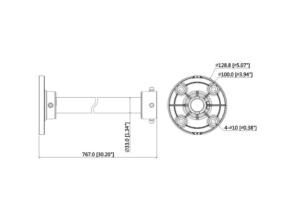 Pręt aluminiowy wiszący do kamer Dahua, długość 767 mm, waga 0,9 kg, obciążenie maks. 2 kg