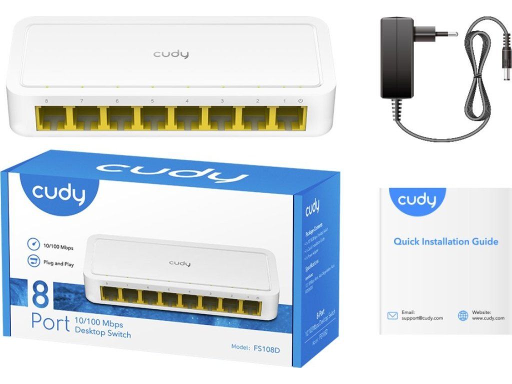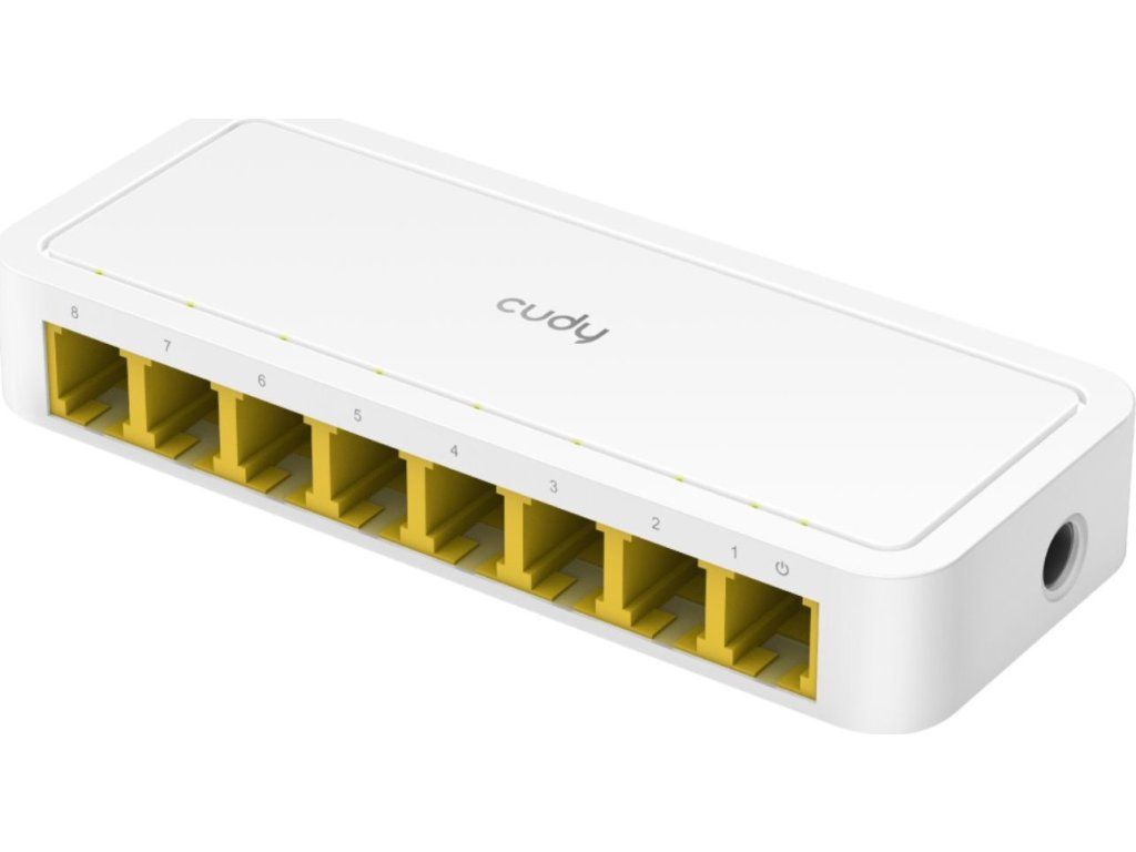 Kompaktowy i trudny do zarządzania8-portowy przełącznik 10/100 Mb/sod producenta Cudy. Produkt ten charakteryzuje się niewielkimi wymiarami fizycznymi, wyjątkowo niskim poborem mocy oraz prostą instalacją plug-and-play bez konieczności konfiguracji. Przełącznik posiadapodwozie plastikowei jest idealnym rozwiązaniem dla środowisk domowych, w których zachodzi potrzeba rozbudowy istniejącej sieci i podłączenia do niej większej liczby urządzeń, takich jak komputery stacjonarne, drukarki, kamery IP, telewizory Smart TV, konsole do gier i inne.