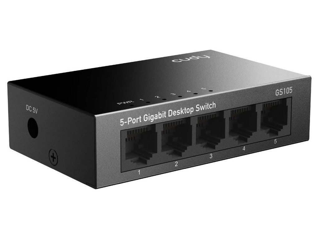 Bardzo proste i niemożliwe do opanowania5-portowy przełącznik gigabitowyOd producenta Cudy. Produkt charakteryzuje się niewielkimi wymiarami, matowo-czarnym kolorem, niskim poborem mocy oraz prostą instalacją plug-and-play bez konieczności ustawiania parametrów. Przełącznik charakteryzuje się trwałością.metalowe podwoziei jest idealnym rozwiązaniem dla środowisk domowych, w których zachodzi potrzeba przyspieszenia istniejącej sieci ze 100 Mb/s do gigabitu lub rozbudowy i podłączenia do niej wielu urządzeń, takich jak komputery stacjonarne, drukarki, kamery IP, telewizory Smart TV, konsole do gier i inne.