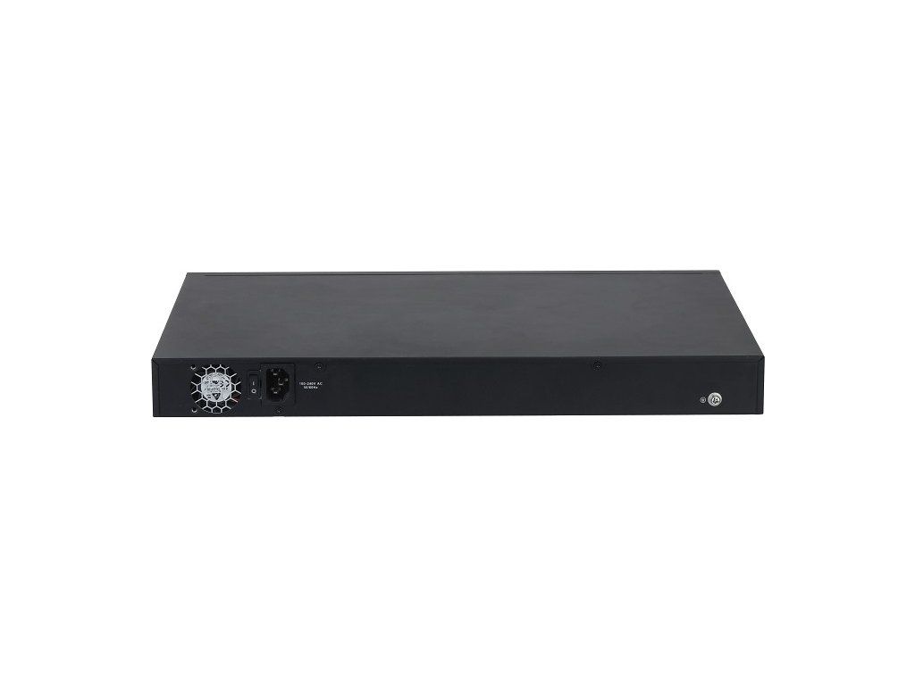 Zarządzalny przełącznik Dahua z 24 portami PoE i 2 portami SFP o zasięgu transmisji do 250 m, 24 porty 10/100 Mb/s + 2 porty uplink 10/100/1000 Mb/s + 2 porty SFP 1000 Mb/s, 1 konsola, obsługa portów PoE++ 1+2 90 W, 24x PoE (IEEE802.3af/ IEEE802.3at/ Hi-PoE/IEEE802.3bt), łącznie dla wszystkich portów maks. 360 W, zarządzanie, obsługa STP/RSTP, watchdog PoE, zabezpieczenie przeciwprzepięciowe 4 kV, zasilanie 230 V AC, temperatura pracy od -10 °C do +55 °C, wymiary 440 x 300 x 44 mm, waga 3,39 kg