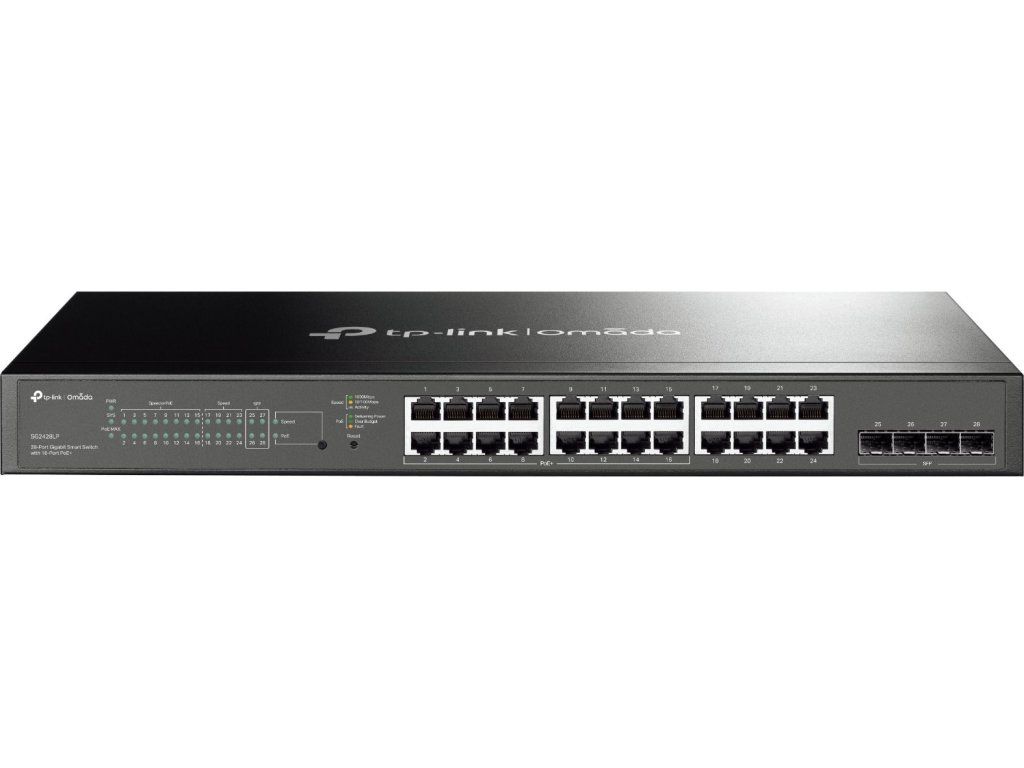 Przełącznik Gigabit Access L2+ Smart PoE firmy TP-Link to idealny wybór do zasilania urządzeń takich jak kamery bezpieczeństwa czy punkty dostępowe Wi-Fi, a także do podłączania urządzeń końcowych w sieci korporacyjnej.24-gigabitowa sieć LANporty, w tym16 obsługuje PoE(802.3af/at) z całkowitąBudżet PoE 150 WPosiada równieżcztery SFPPorty rozszerzające łączność sieciową. Zarządzanie odbywa się za pośrednictwem interfejsu webowego, CLI, SNMP lub centralnie za pomocą kontrolera Omada. Wytrzymała metalowa obudowa i konstrukcja.bez fanówGwarantują cichą i niezawodną pracę w wymagających warunkach.