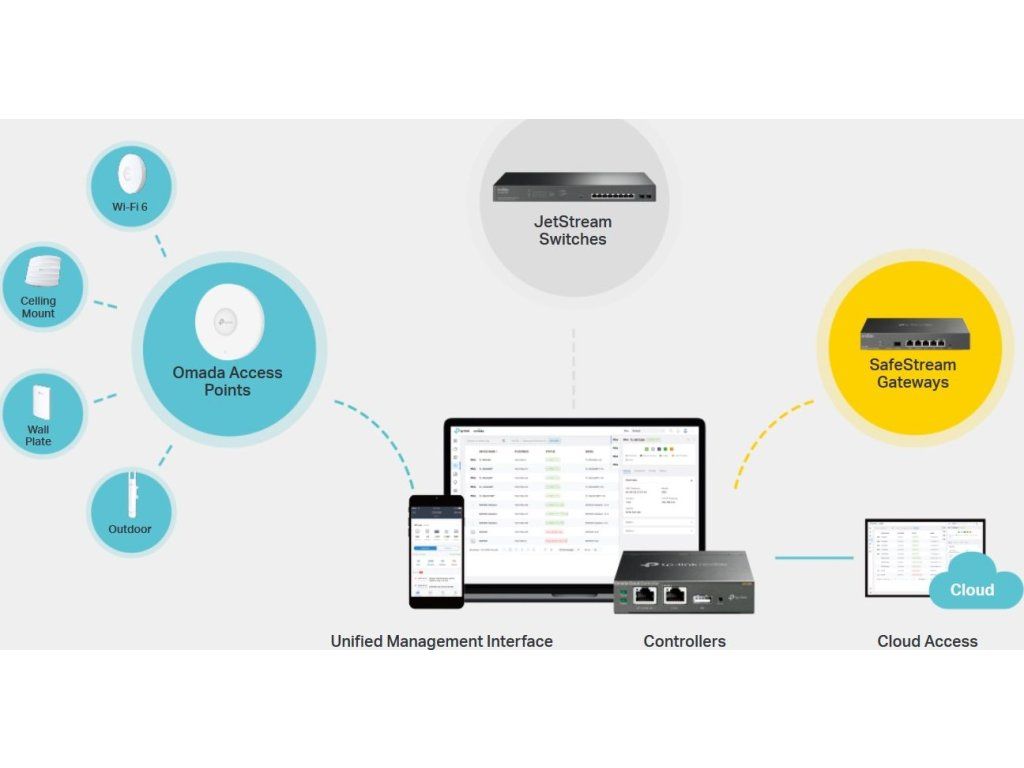 - Centralne zarządzanie: dostęp do chmury i aplikacja Omada ułatwiająca zarządzanie