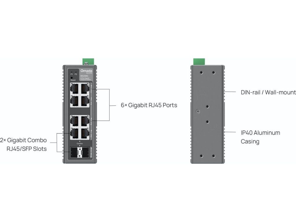 Zapewnij niezawodną i szybką infrastrukturę sieciową dzięki8 portów gigabitowych, w tym 6 gniazd RJ45 i 2 gniazda RJ45/SFP Combo, które umożliwiają elastyczne podłączanie różnych urządzeń. Idealne do środowisk przemysłowych i korporacyjnych, gdzie stabilność, wysoka prędkość i bezproblemowa łączność dla wszystkich krytycznych aplikacji są kluczowe.