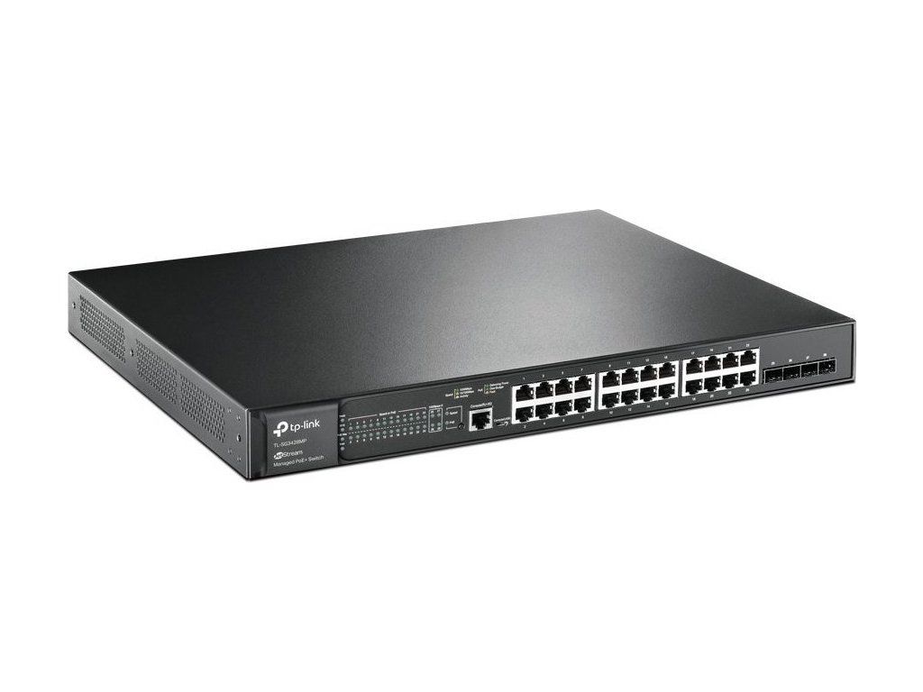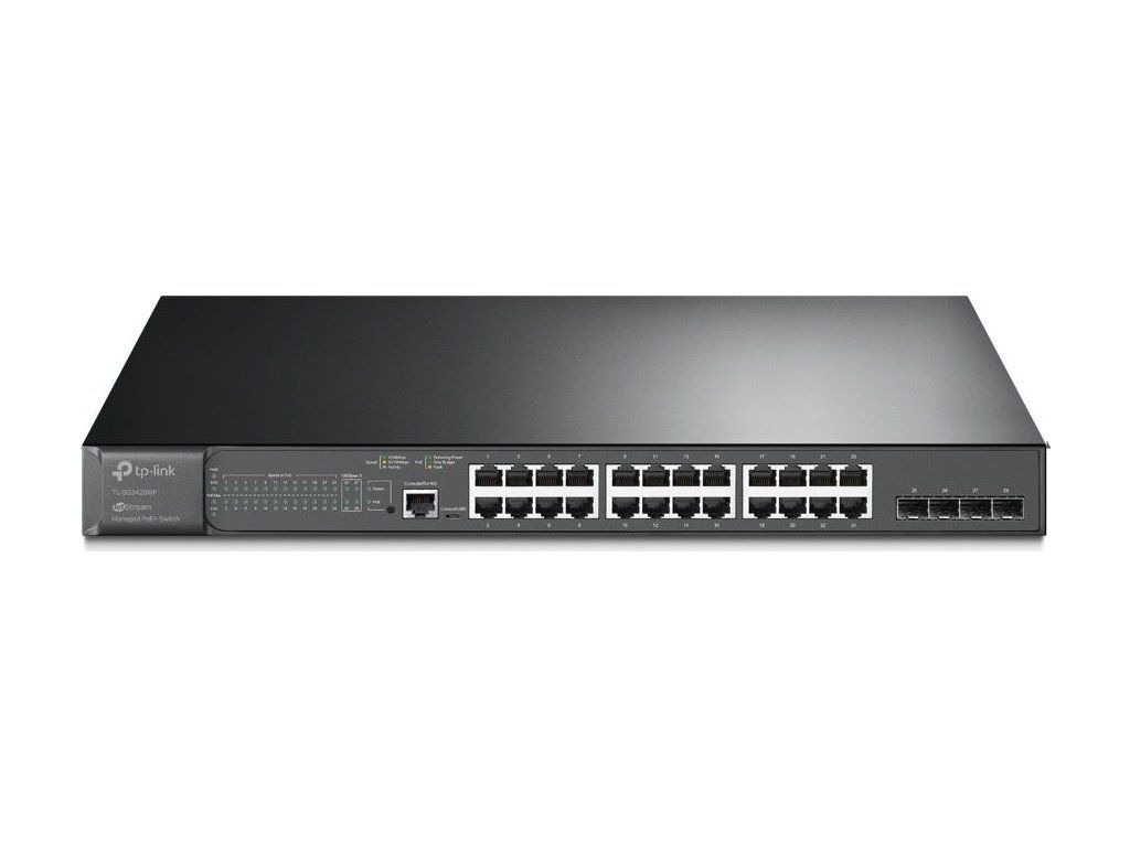 TP-Link TL-SG3428MP to w pełni zarządzalny przełącznik warstwy 2 z rodziny JetStream. Wyposażony jest w24 porty Gigabit LANze wsparciem802.3af/at PoE,4x SFPi dwa porty konsoli. Obsługa PoE na wszystkich metalowych portach pozwala na zasilanie urządzeń o poborze mocy do 30 W/port, a całkowity budżet PoE przełącznika wynosi384 WDzięki konstrukcji rackowej przełącznik można zainstalować w szafie 19". Przełącznik oferuje również wysoką wydajność, kontrolę ruchu sieciowego QoS na poziomie korporacyjnym, przydatne strategie bezpieczeństwa oraz bogate funkcje zarządzania warstwą 2. Zarządzanie, obsługa IPv6 i VLAN są w standardzie.