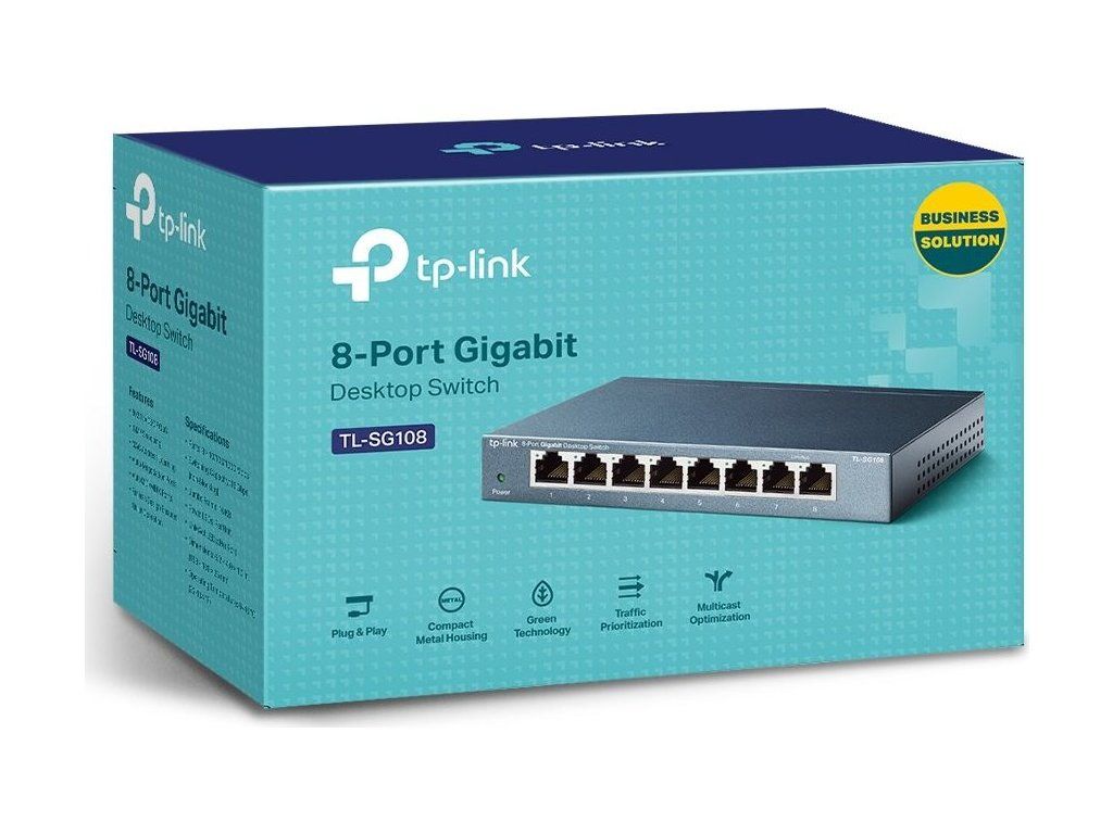 8 portów 10/100/1000 Mb/sPrezentujemy przełącznik stacjonarny TP-LINK TL-SG108Łatwy sposób na modernizację do Gigabit EthernetZwiększ prędkość połączeń serwera sieciowego i szkieletowych lub spraw, by gigabitowe prędkości stały się rzeczywistością na komputerach stacjonarnych. Ponadto przełącznik TL-SG108 charakteryzuje się konstrukcją o niższym zużyciu energii. Dzięki innowacyjnej technologii oszczędzania energii, przełącznik TL-SG108 może…zmniejsz zużycie energii nawet o 72%, co czyni je ekologicznym rozwiązaniem dla Twojej sieci domowej lub firmowej.