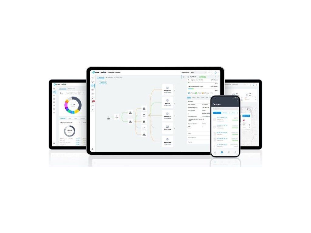 Możesz łatwo zarządzać setkami punktów dostępowych EAP i monitorować je – wszystko z jednego miejsca. Oprogramowanie kontrolera Omada firmy TP-Link oferujedo zarządzania całą sieciąIntuicyjny interfejs. Kontroluj całą sieć i jej mapowanie z dowolnego komputera podłączonego do sieci. Nie wymaga dodatkowych kosztów ani specjalnego szkolenia. Zarządzanie firmową siecią Wi-Fi nigdy nie było prostsze.skuteczny i opłacalny.