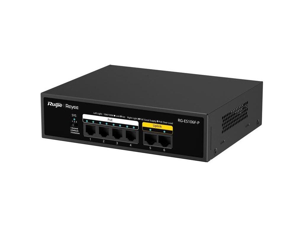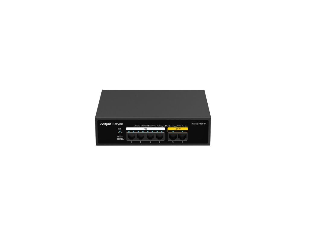 Reyee RG-ES106F-P, 6-portowy niezarządzalny przełącznik PoE 10/100 Mb/s