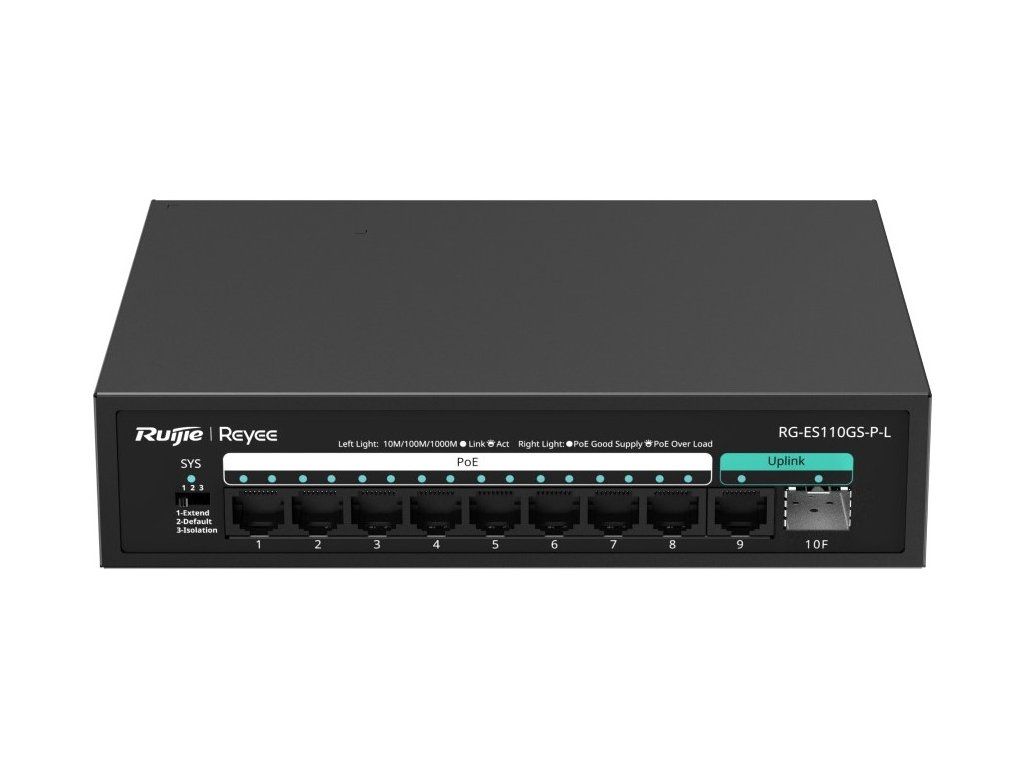 Reyee RG-ES110GS-P-L, 10-portowy niezarządzalny przełącznik PoE 10/100/1000 Mb/s