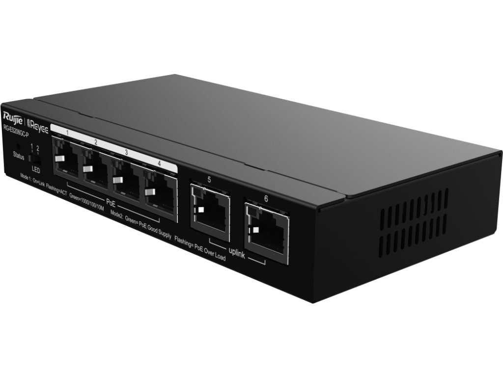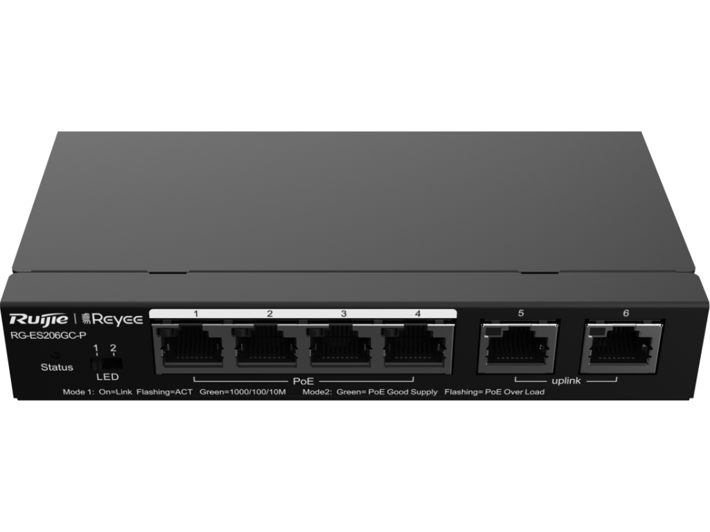 Reyee RG-ES206GC-P 6-portowy gigabitowy inteligentny przełącznik POE, 4 porty PoE/POE+ z 2 gigabitowymi portami uplink RJ45, PoE 54 W