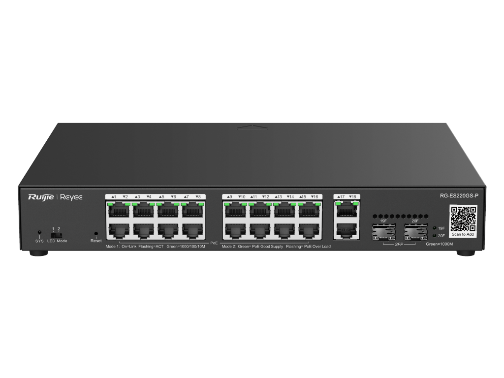 Reyee RG-ES220GS-P 20-portowy gigabitowy inteligentny przełącznik PoE zarządzany w chmurze
