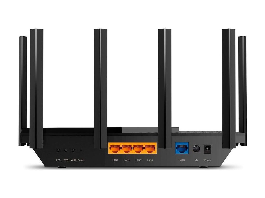 Archer AX5400 to dwupasmowy, nowoczesny router Wi-Fi 6 z obsługą najnowszego standardu Wi-Fi802.11ax, wsteczna kompatybilność z 802.11a/b/g/n/ac, porty gigabitowe, 6 stałych anten i jeden port USB. Router obsługujeMU-MIMOtechnologia umożliwiająca jednoczesną obsługę wielu urządzeń bez zmniejszania przepustowości sieci,4x4 NA ZEWNĄTRZw paśmie 5 GHz i 2x2 MIMO w paśmie 2,4 GHz. Dzięki standardowi 802.11ax router ma prędkość transmisji4804 Mb/sw paśmie 5 GHz i574 Mb/sw paśmie 2,4 GHz. Router ma4x Gigabitowa sieć LAN, 1x Gigabitowa sieć WAN do dostępu do Internetu od dostawcy i wystarczająca wydajność routingu są zapewnione przez 3-rdzeniowy procesor o taktowaniu 1,5 GHz.