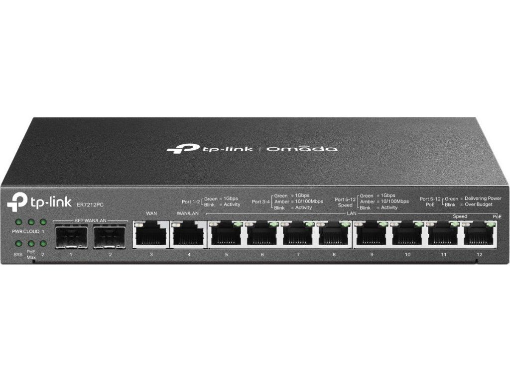 Omada ER7212PC to urządzenie 3 w 1, które łączy w sobie funkcje routera VPN, przełącznika PoE i kontrolera Omadabez ani jednego wentylatoraBezpieczny i niezawodny router gigabitowy z własnym zarządzaniem przez sieć, ale także możliwością scentralizowanego zarządzania za pomocą kontrolera Omada z dowolnego miejsca i o dowolnej porze. Router ma całkowitą2 gigabitowe sieci WANporty, z których jeden to LAN/WAN,2 gigabitowe SFPporty i8 portów Gigabit LAN z PoE802.3af/at (maks. 30 W/port) z całkowitąBudżet PoE 110 WRouter zapewniający dostęp do sieci lokalnej umożliwia również skonfigurowanie kilku opcji serwera VPN, mianowicie: IPsec, PPTP, L2TP i OpenVPN.