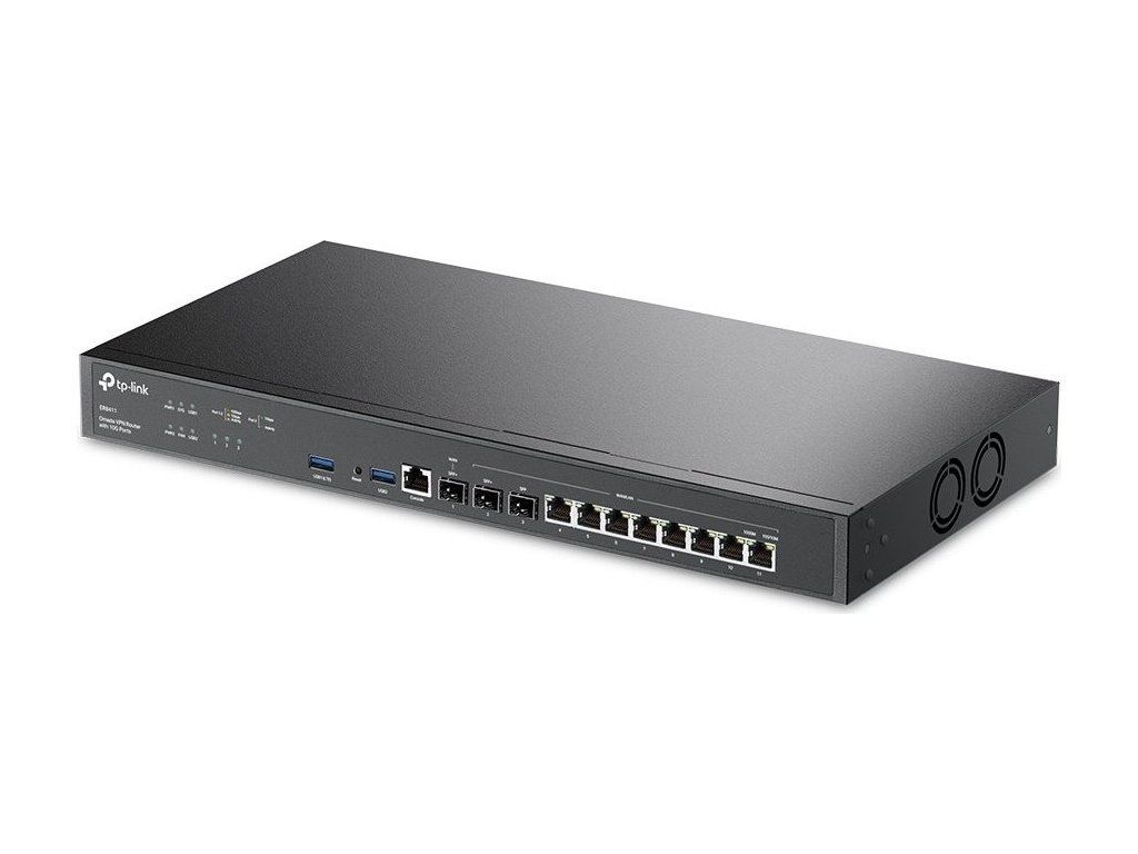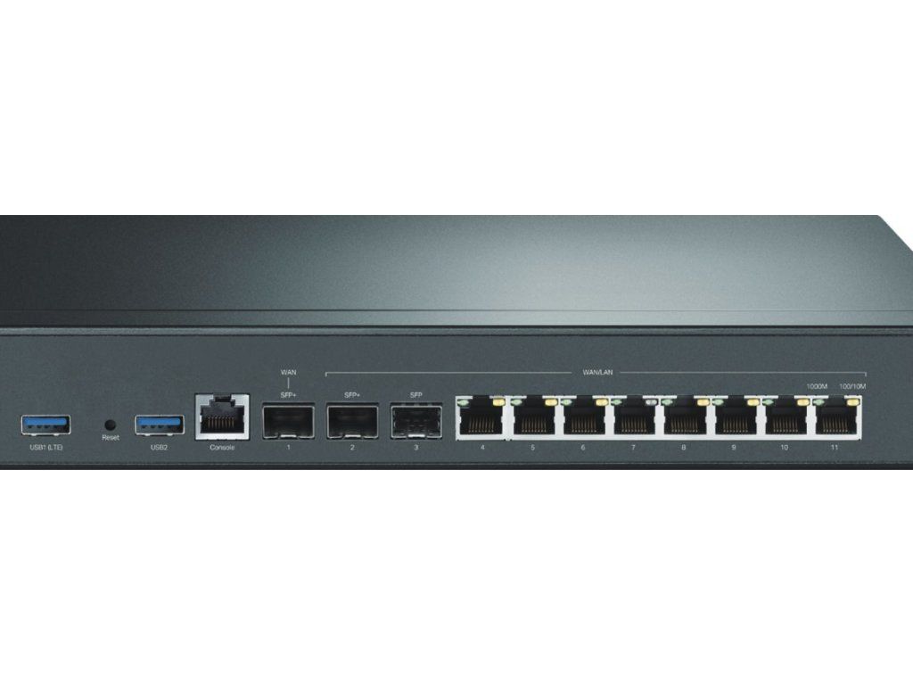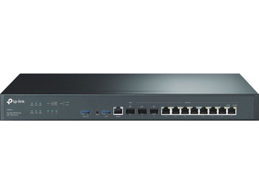Router Omada VPN ER8411 to wydajny router 1U do montażu w szafie rack z dwoma wentylatorami,do 10 portów WANi redundantne zasilanie dzięki dwóm wbudowanym źródłom 230 V AC. Bezpieczny i niezawodny router gigabitowy z własnym zarządzaniem przez sieć, a także możliwością scentralizowanego zarządzania za pomocą kontrolera Omada z dowolnego miejsca i o dowolnej porze. Router ma całkowitą8-gigabitowa sieć LAN/WANporty metalowe,dwa SFP+ i jeden SFPPort optyczny, port szeregowy RJ45 oraz dwa porty USB 3.0 do podłączenia modemu LTE. Router do dostępu do sieci lokalnej umożliwia również konfigurację kilku opcji serwera VPN, a mianowicie: IPsec, PPTP, L2TP, OpenVPN i SSL.