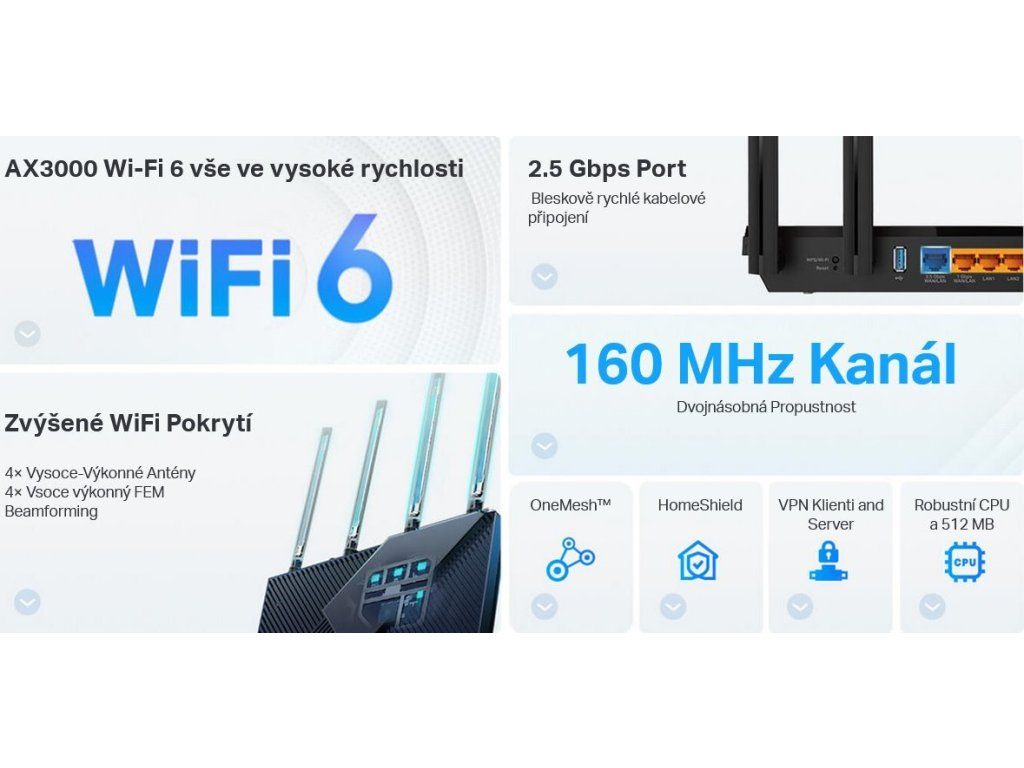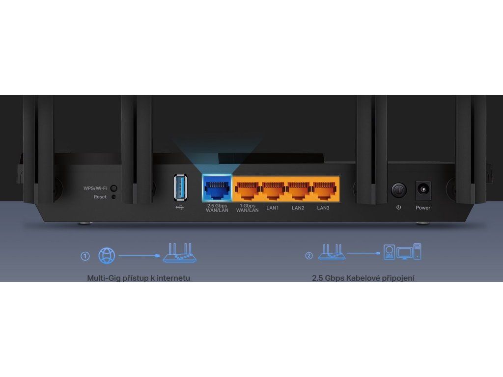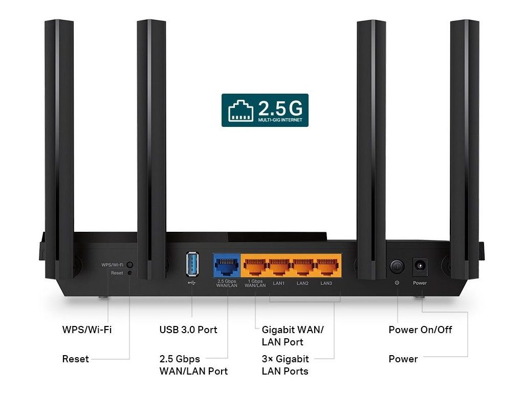 Archer AX55 Pro to dwupasmowy router Wi-Fi 6 firmy TP-Link, który charakteryzuje się:4× 10/100/1000 Mb/s sieci LAN, 1× 10/100/1000/2500 Mb/s WAN i 4 stałe anteny. Część bezprzewodowa może pracować w dwóch pasmach jednocześnie z prędkością574 Mb/s przy 2,4 GHzzespół i2402 Mb/s w paśmie 5 GHzRouter obsługuje IPv4 i najnowszy routing IPv6. Oprócz najczęściej używanego trybu routera AP, router obsługuje również tryb punktu dostępowego.