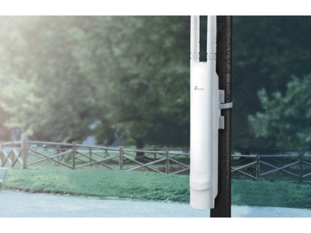 Punkt dostępowy TP-Link Wireless Access Point z rodziny EAP przeznaczony jest do:do użytku na zewnątrzz możliwością montażu na słupie lub ścianie. AP obsługuje tylkoPasmo 2,4 GHzStandardy Wi-Fi 802.11b/g/n to 2×2 MIMO, a jego maksymalna prędkość transmisji wynosi300 Mb/si posiada dwie odłączane anteny o zysku 3 dBi.