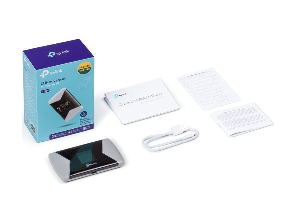 M7450 to kieszonkowy router 4G LTE firmy TP-Link z wbudowanym dwuzakresowym Wi-Fi -300 Mb/sw paśmie 2,4 GHz i866 Mb/sw paśmie 5 GHz, wbudowana bateria o pojemności3000mAhz czasem pracy baterii do 15 godzin, slotem SD na karty o pojemności do 32 GB i szeroką obsługą kanałów LTE.
