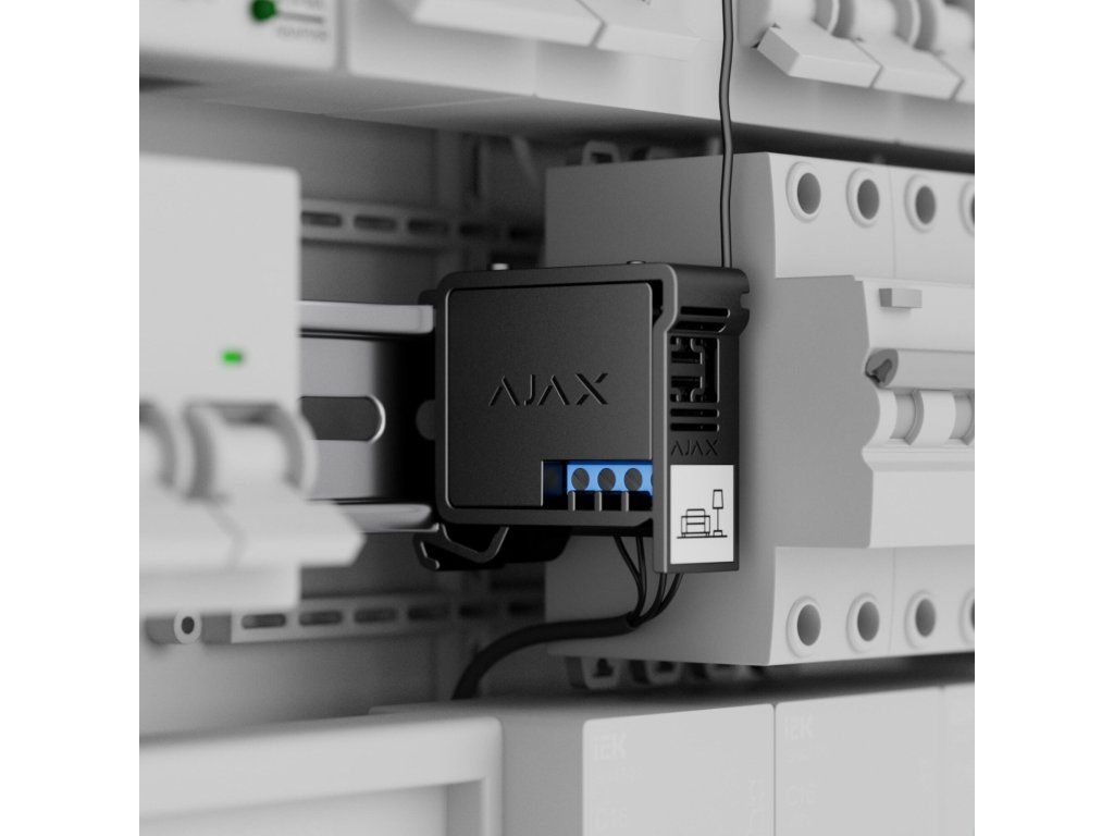 Uchwyt DIN umożliwia montaż przekaźników Ajax lub WallSwitch na szynie DIN. Element można umieścić w rozdzielnicy lub szafie elektrycznej.