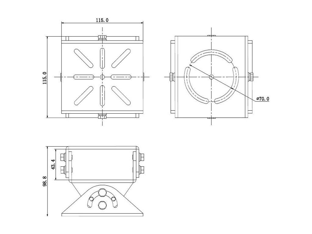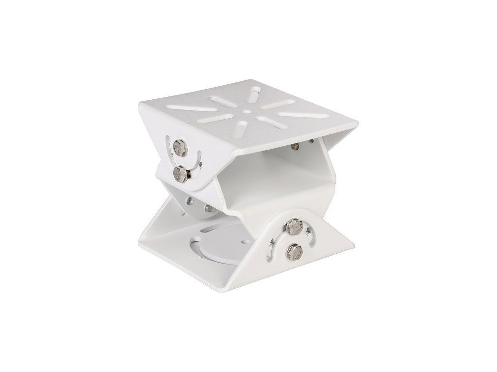 Biały uchwyt na pokrywę z regulacją w trzech osiach, nadaje się do różnych pokryćPFH610N/V/A i ITC206, maksymalne obciążenie 6 kg, temperatura pracy od -40 °C do +60 °C, wymiary 115 x 115 x 98,8 mm, waga uchwytu 0,5 kg, materiał aluminium