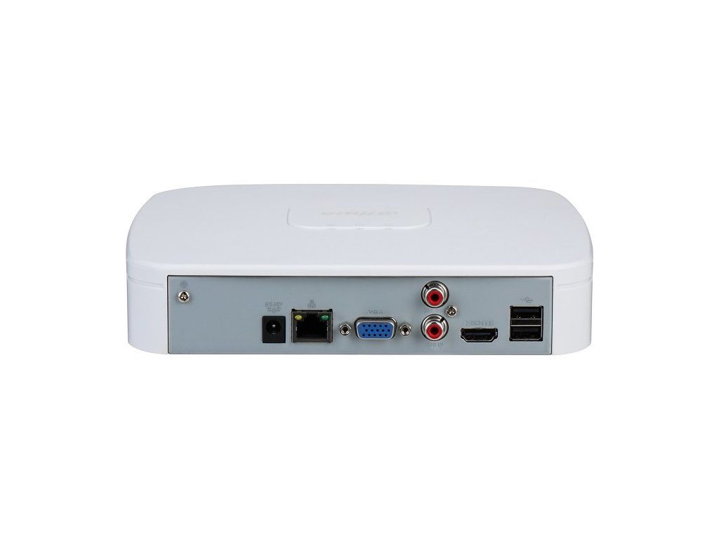 Rejestrator IP 8 kanałów, Smart H.265+ / H.265 / Smart H.264+ / H.264 / MJPEG; 80 Mb/s przychodzące, 80 Mb/s nagrywające, 60 Mb/s wychodzące;rozdzielczość kamery maks. 12 Mpx; funkcje AI w NVR: SMD Plus 4 kanały; funkcje AI z kamer: ochrona obwodowa 4 kanały, SMD Plus 4 kanały; 1x SATA maks. 20 TB na 1 dysk; Audio RCA I/O 1/1; 2x USB 2.0, 1x HDMI, 1x VGA, 1x port 10/100 RJ-45; zasilanie 12 V DC / 1,5 A, pobór mocy maks. 12 V 10 W (bez dysku twardego), temperatura pracy od -10 °C do +55 °C, waga 0,85 kg, wymiary 204,6 x 206,4 x 45,6 mm