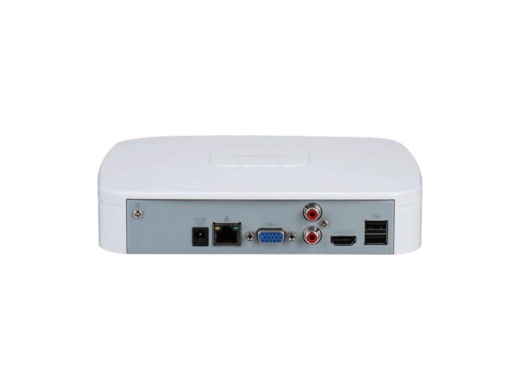 Rejestrator IP 4 kanały, Smart H.265+ / H.265 / Smart H.264+ / H.264; 80 Mb/s przychodzące, 80 Mb/s nagrywające, 80 Mb/s wychodzące;rozdzielczość kamery maks. 16 Mpx; funkcje AI w rejestratorze NVR: ochrona obwodowa maks. 2 kanały, wykrywanie twarzy maks. 1 kanał, rozpoznawanie twarzy 1 kanał (FD+FR w rejestratorze NVR), 4 kanały (FD w kamerze), SMD Plus 4 kanały; funkcje AI z kamer: ochrona obwodowa 4 kanały, wykrywanie twarzy 4 kanały, rozpoznawanie twarzy 4 kanały, SMD Plus 4 kanały; 1x SATA maks. 16 TB na 1 dysk; Audio RCA I/O 1/1, 2x USB 2.0, 1x HDMI, 1x VGA, 1x 10/100 port RJ-45; zasilanie 12 V DC / 2 A, pobór mocy maks. 10 W; temperatura pracy od -10 °C do +55 °C, waga 0,45 kg, wymiary 204,6 x 206,4 x 45,6 mm