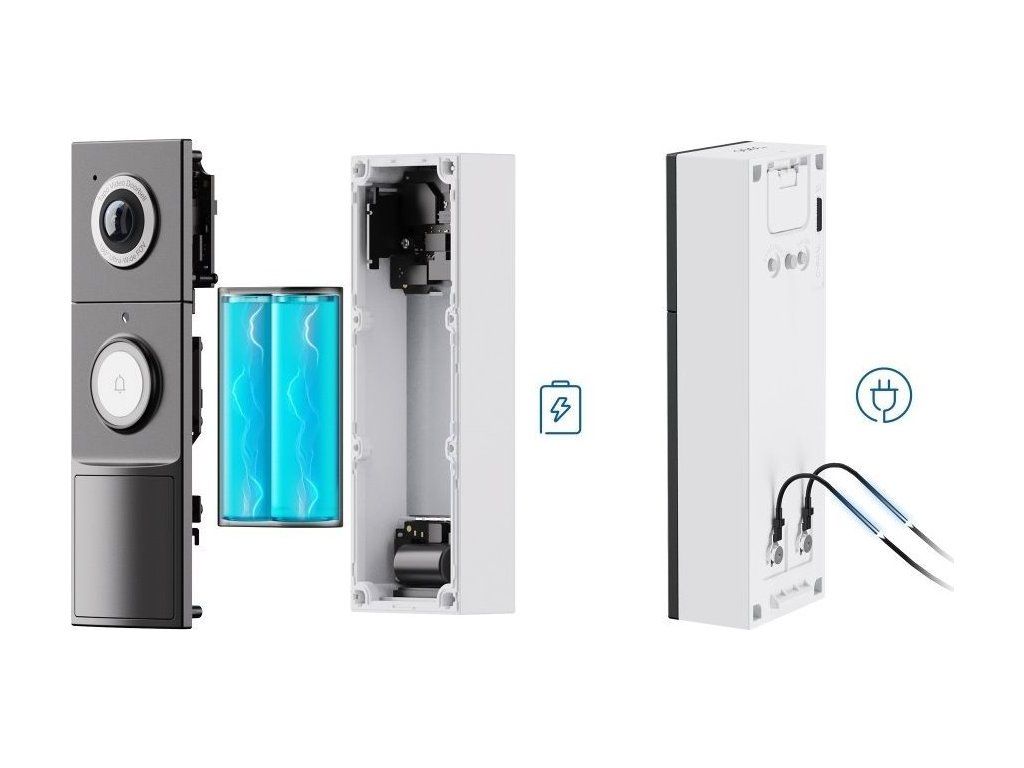 Akumulator o pojemności 10 000 mAh pozwala znacznie wydłużyć czas pracystosować do 210 dnii daje możliwość umieszczenia go w dowolnym miejscu. Alternatywnie można go podłączyć do dzwonka o napięciu 8–24 V AC.