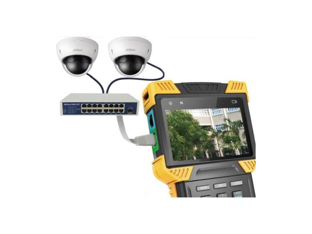 Zintegrowany tester kamer IP, 4-calowy ekran TFT o rozdzielczości 800 x 480 px, klawiatura QWERTY, ustawienia ONVIF i HDCVI / kamery analogowej, 8-krotny zoom cyfrowy,obsługa audio i sterowanie przez RS-485, test długości i tłumienia kabla sieciowego w zakresie 1–130 m, monitorowanie przepływu danych, skaner adresów IP, ping, przechowywanie obrazów i wideo, funkcja odtwarzania zapisanych nagrań, cyfrowy multimetr,pamięć wewnętrzna 8 GB, 2x RJ-45, 2x BNC, 1x RS-485, wejście audio, 1x USB Mini-B, 1x reset,zasilanie kamer bezpośrednio z urządzenia za pomocą PoE+ i 12 V DC, Latarka LED,godziny pracy 8 godzin, temperatura pracy od -10 °C do +55 °C, wymiary 193 x 115 x 37 mm, waga 0,54 kg